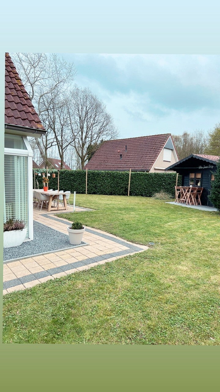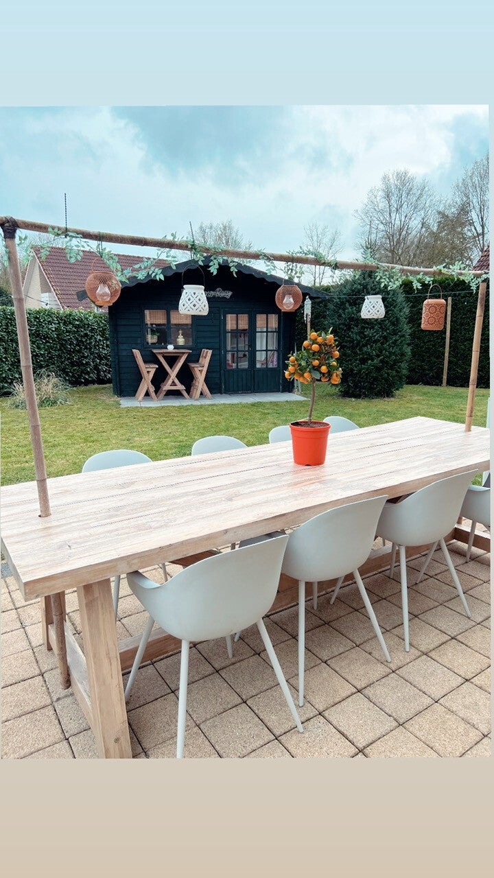 De woning beschikt over een royale privé tuin van 550 m², compleet ingericht met een eettafel, bartafel en een gezellige loungeplek. Voor de kinderen is er een trampoline, en in het sfeervolle tuinhuis kun je heerlijk relaxen.